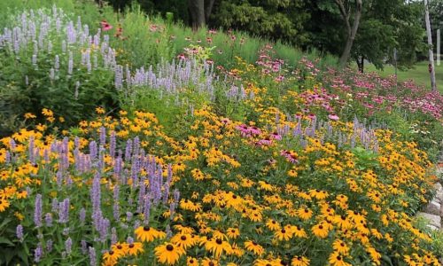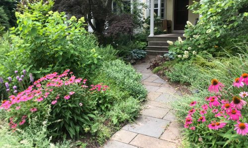 While lawns are great for play space and recreation, the reality is that far too many spaces in our developed landscapes are left as lawn. There is a great opportunity to transition these spaces – hard to mow slopes, large expanses of lawn that just get mowed and never used, or where grass doesn’t grow well – into beautiful and ecologically beneficial spaces. When these spaces are planted with pollinator friendly plants, it is amazing at how much life shows up – birds, bees, butterflies. The space comes alive with color and energy, and humans love them as well. The allure of these spaces is clear: we seek out hikes in the woods and through the meadows of our nature preserves, visits to local gardens (Chanticleer, Stoneleigh, Calder Gardens, or one of our many arboretums) to find peace and recharge. Creating these spaces at home not only contributes to the matrix of habitat for struggling species, it also adds positively to the daily life of the people who live there and get to enjoy the seasonal rhythms of the garden. When considering that lawn care contributes so much pollution to our spaces – herbicides and pesticides running into our rivers and streams, sound and air pollution from mowers and blowers, the appeal of lawn transition becomes clear.